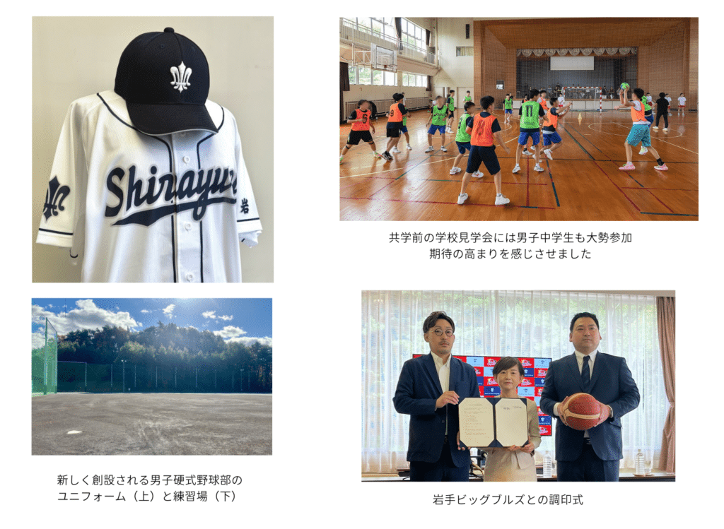 新たな部活動として男子硬式野球部(高校)を創設。また、従来の部活動のほとんどは男子も活動できることになります。男子バスケットボール部(高校)は、岩手ビッグブルズと連携し充実した練習環境の確保に努めます。